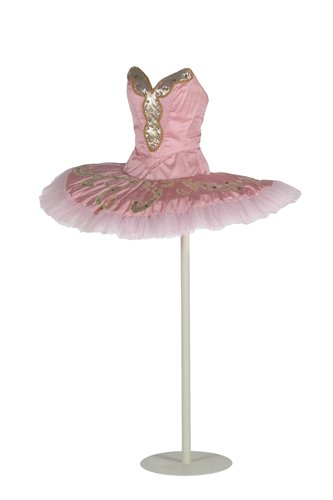 Acabado el espectáculo en nuestro honor, nos fueron indicando el recorrido a seguir según un criterio cronológico -un breve paréntesis: en este enorme museo, de acero por fuera y madera por dentro, está prohibido sacar fotos y la penumbra de las distintas estancias sin duda no invita a ello, así que las aquí publicadas provienen de la  página web del Museo del Traje / CIPE-, empezando por un escaparate introductorio sobre distintas tipologías de indumentaria, según el oficio, las creencias religiosas o el grupo social de pertenencia de cada persona: desde un uniforme de gala del Cuerpo Real hasta un hábito de nazareno, de un chillaba a un kimono pero, sobre todo y sobre todos, en el centro, escoltado por un traje-pantalón y uno de novia, sobresalía y destacaba un romántico tutú rosa que, aunque no fuera un traje de princesa, entró enseguida en el imaginario ultradimensional de mi joven acompañante. Allí se veía ella, danzando, o mejor, flotando en el aire, al son de las celebres notas de Tchiakovsky, con ese corpiño ceñido de escote corazón y esa falda de tul que se abría en forma de plato, cual alas de un esbelto cisne rosa, o mejor, flamenco, que se libraba elegante en su vuelo imaginario…