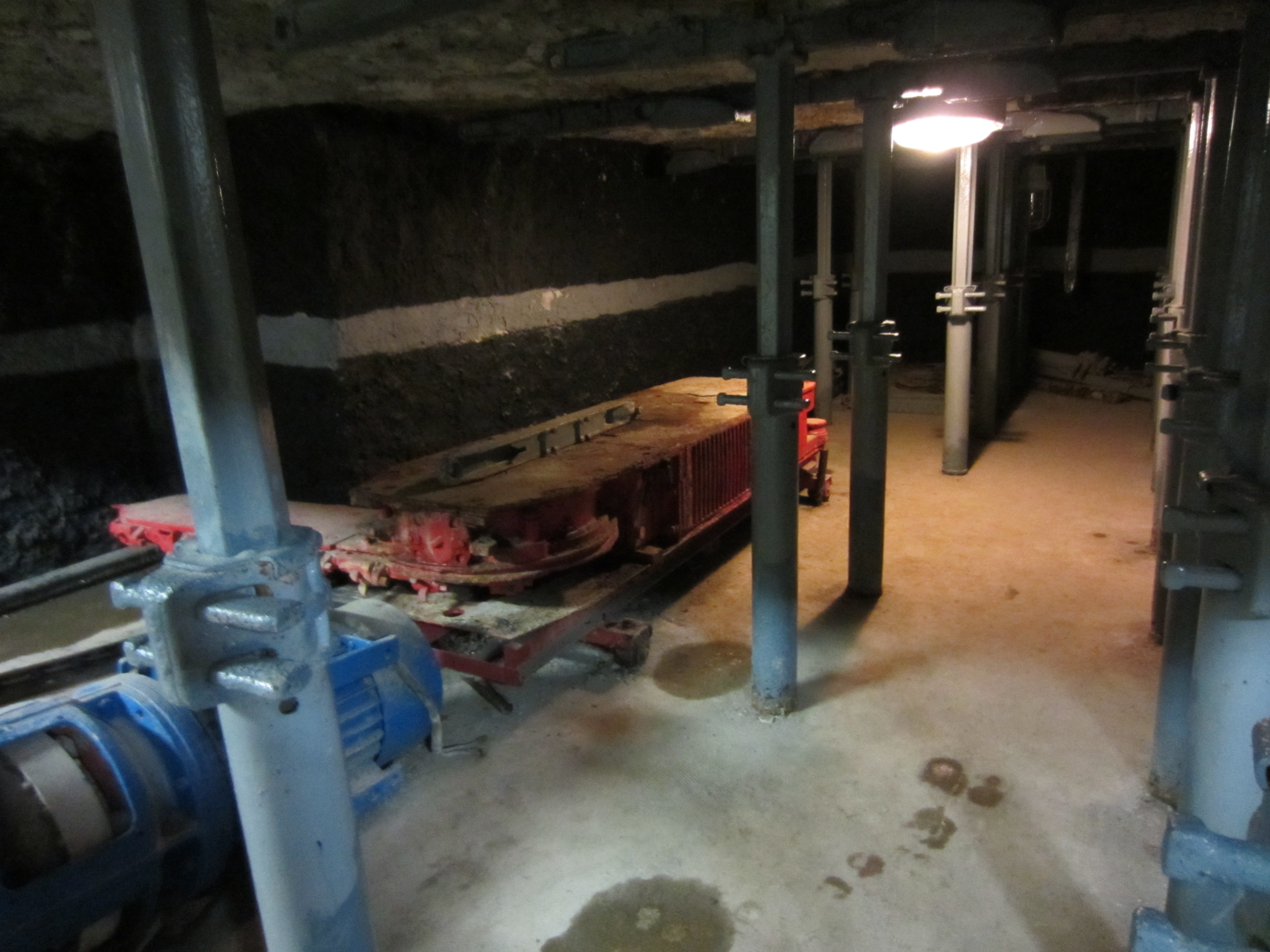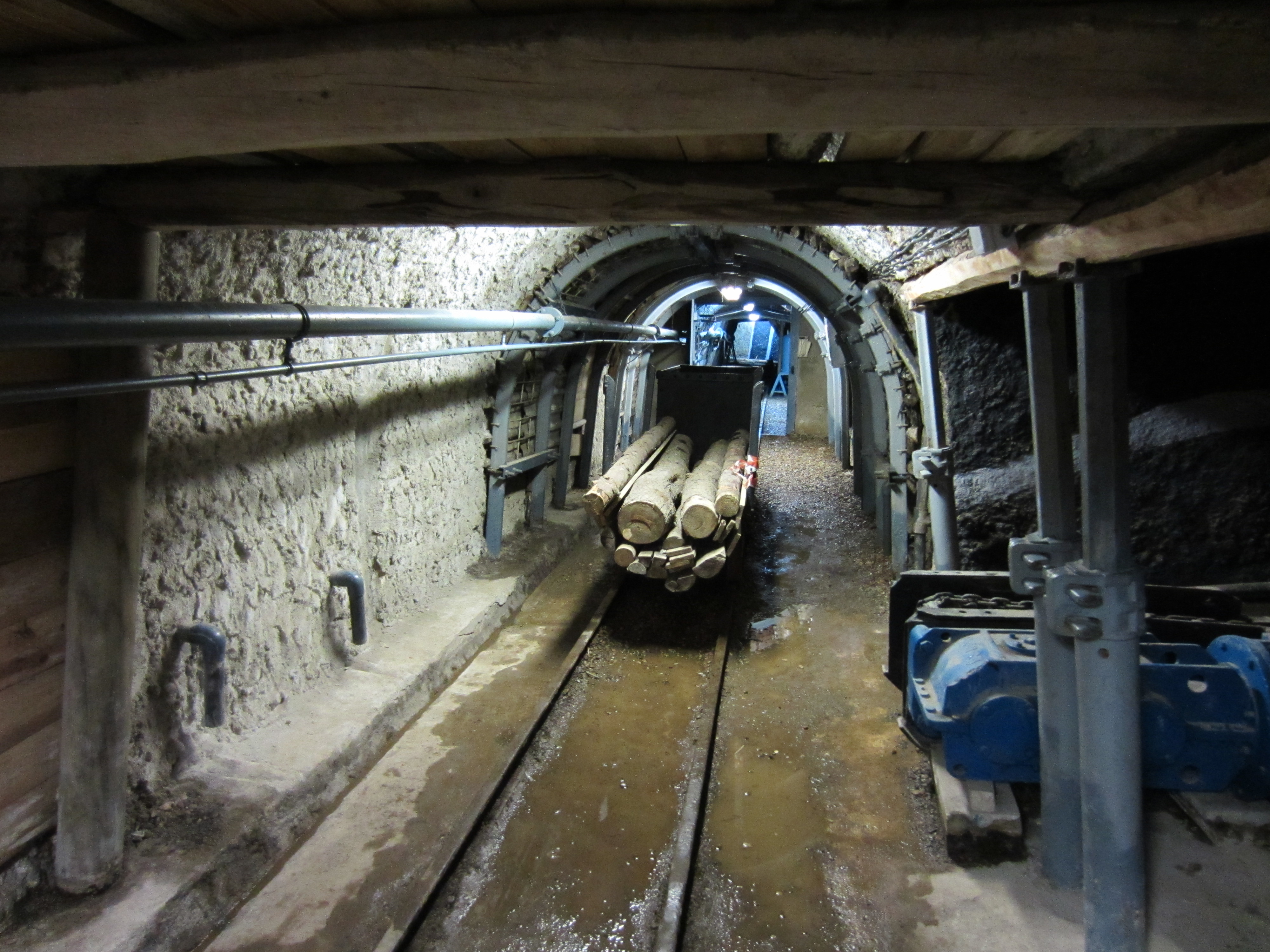 Todos explotamos emocionados en júbilos de alegría, abrazándonos y felicitándonos, pudiendo finalmente avanzar hasta el frente de avance de la galería donde se simulaba una capa de carbón delgada y verticalizada. Delante de un coladero por el cual caía este último, una vez arrancado, desde una altura de diez metros, nos pusimos a observar, por encima de nuestras cabezas, los testeros a través de los cuales se había escapado el ogro terrorífico. Esa ingeniosa construcción, con una típica entibación de madera con mampostería y bastidores, nos dejó sin aliento, imaginándonos a todas aquellas personas que, en la realidad, cada día trepaban por esas paredes para ganarse un más que merecido sueldo. Sin embargo nuestros tristes pensamientos fueron interrumpidos por una insólita y absurda petición de la más pequeña de la familia: ¡seguir el rastro del monstruo!