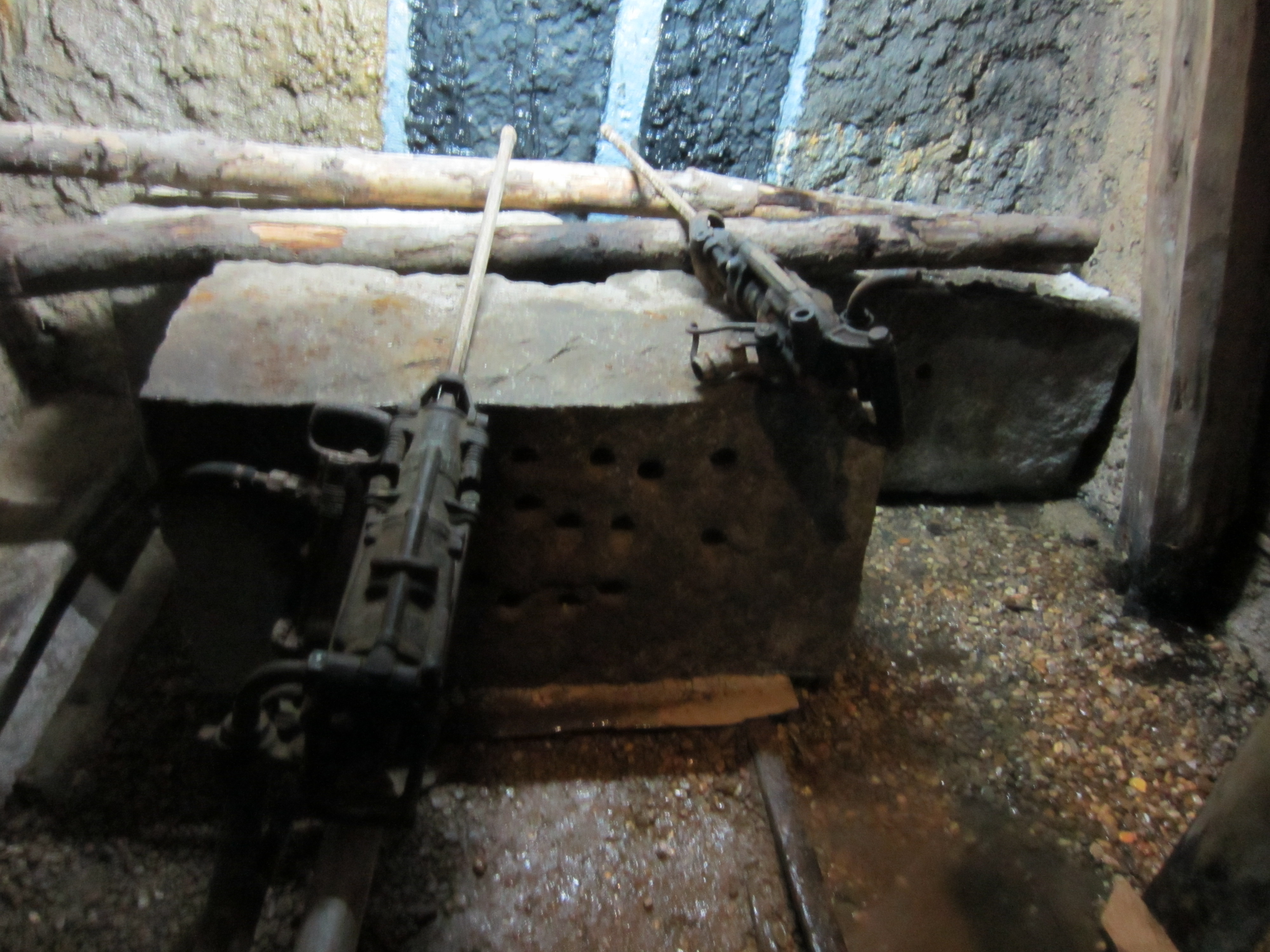 No importaba; lo que importaba de verdad era no tentar la suerte una vez más, sino más bien conformarnos con una rápida foto del grueso bloque de hormigón junto con dos especies de fusiles, unos martillos perforadores neumáticos, que descansaban frente a nosotros, para salir de allí cuanto antes, sin perder tiempo en buscar “mi tesoro”, es decir, mis supuestas y deseadas piedras preciosas del principio del recorrido -¡no pensaba acabar como Gollum por culpa de mi codicia!-.