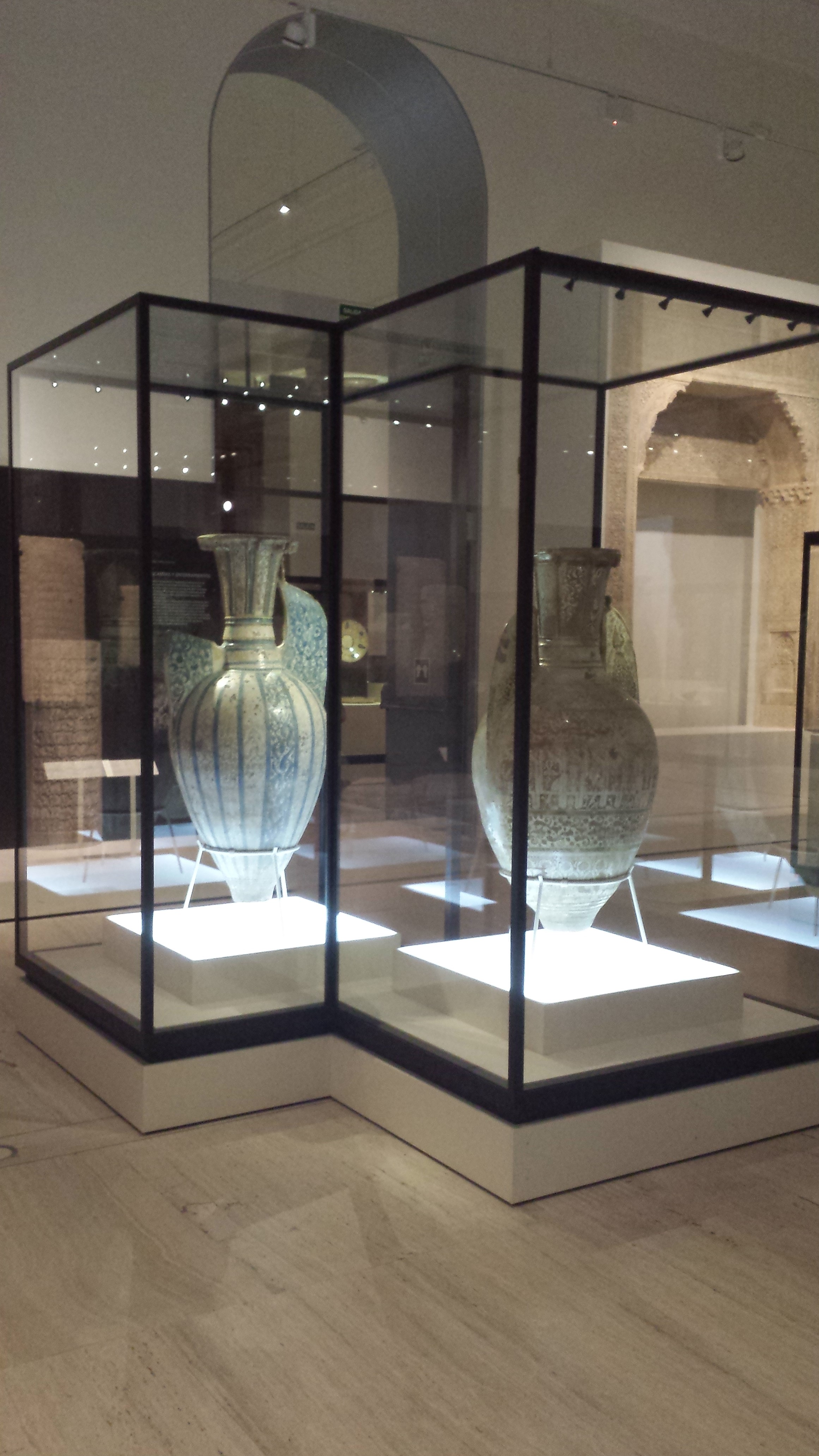 Y, por último, a escasos metros de distancia, me topé con unos imponentes jarrones de reflejos dorados, con inscripciones en caracteres cúficos, que se levantaban orgullosos cuales soberbios ejemplos del arte cerámica de los reinos nazaríes de Granada.