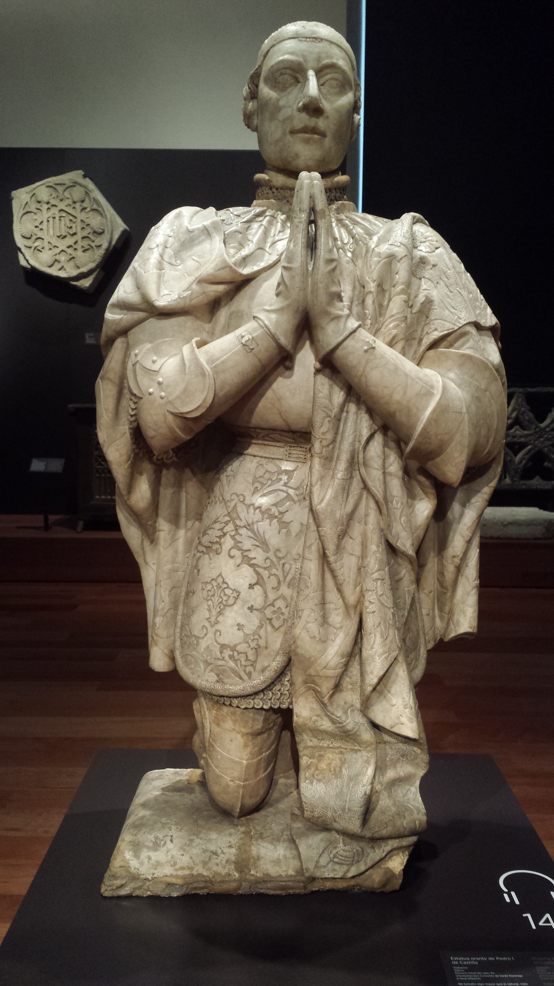 Pero todo esfuerzo de apatía fue en vano. Me emocioné, me sorprendí y me detuve frente a cada una de aquellas obras. Ya no podía más cuando ante la espectacular estatua de alabastro de Pedro I de Castilla, caí presa de mi fantasía. Ese pudiente rey, vistiendo su pesada armadura, cubierta por un manto real, orando, con las manos juntas, arrodillado delante de mí, como si fuera yo su soberana, captó inevitablemente toda mi atención: le miré, le observé, le escuché y, después, le hablé, le conforté y le perdoné todos sus pecados: ¡Aliapiedi había vuelto en si!