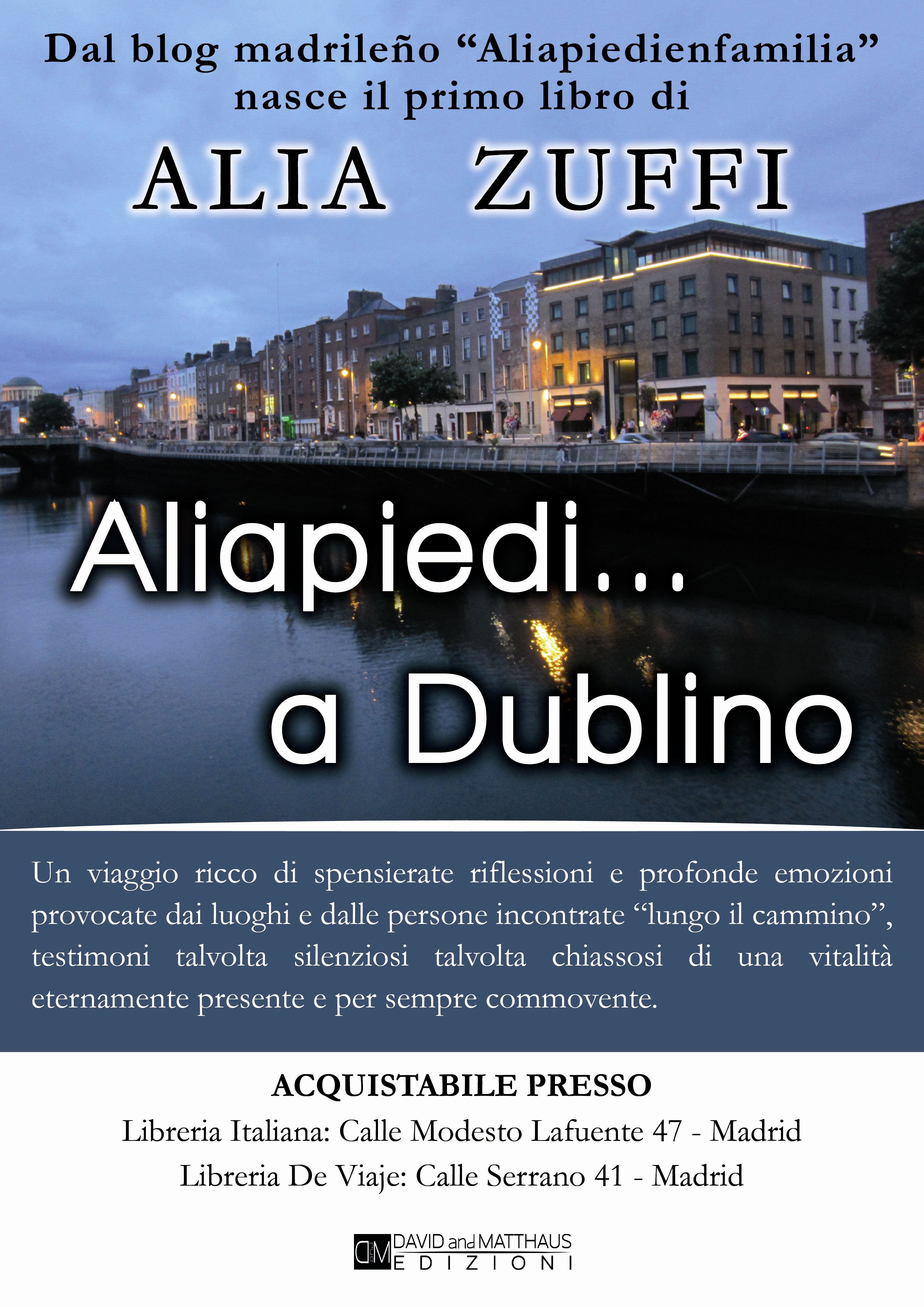 Y después de esta etapa multisensorial, ¿por qué no seguir el camino por la elegante calle Serrano y, al número 41, bajar los escalones que dan acceso a una curiosa agencia-librería “De Viaje” en busca de un libro “aliapiedesco” – es decir, “Aliapiedi… a Dublino”, hijo real de este blog virtual – para un regalo “all’italiana” con el que sorprender un amigo, familiar o uno mismo?