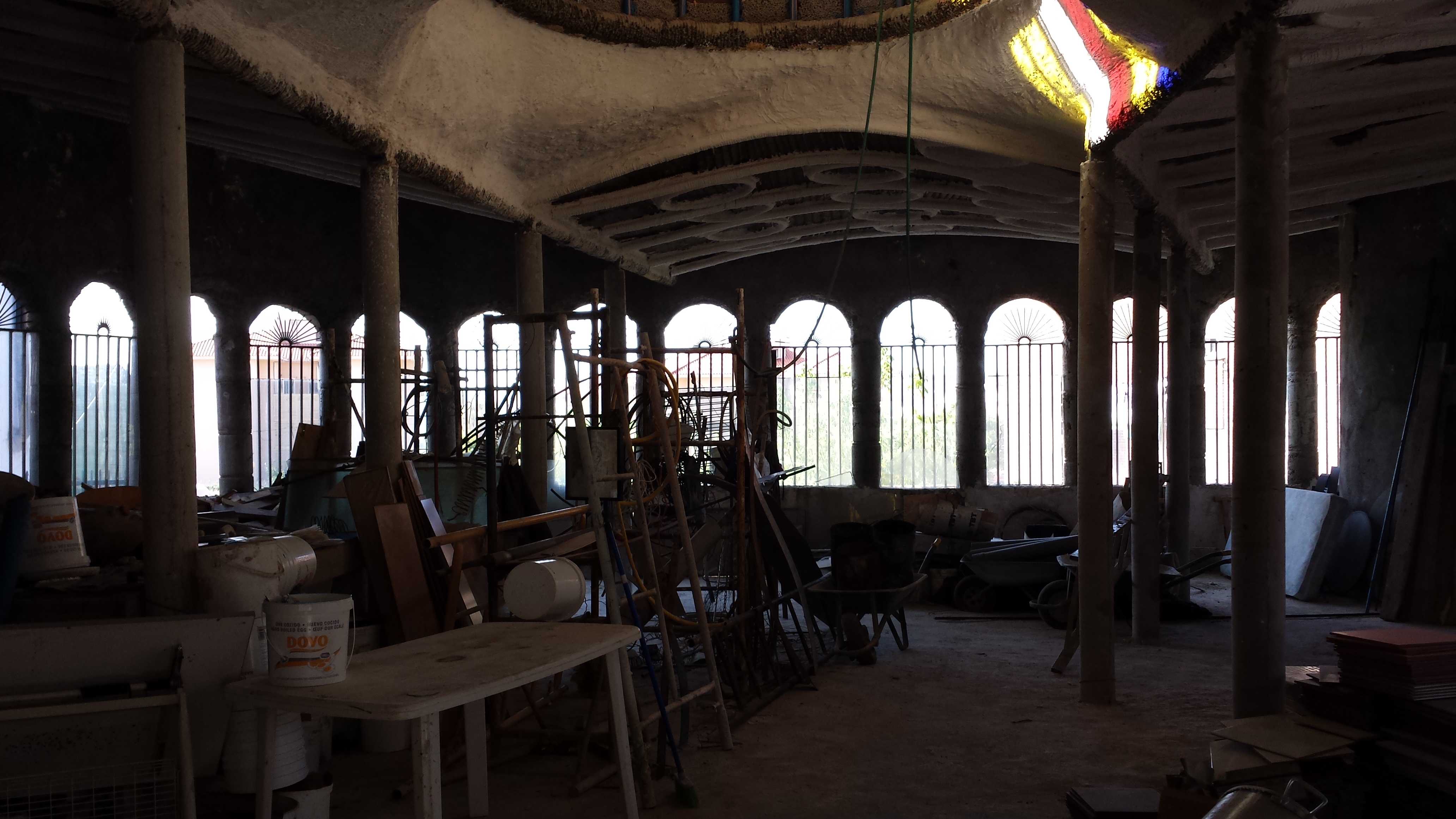 Reconozco que había que echarle un poco, o un bastante, de imaginación para verlo así, decorado de esta forma, pero la estructura, el esqueleto, de este espacio, compuesto por dos niveles de arcos, cada uno de ellos solapados por rosetones y ventanas de diferentes colores en función del vidrio utilizado –¿quién sabe de dónde lo habrá sacado?– ya estaba allí, a medio cumplir, esperando pacíficamente su finalización.