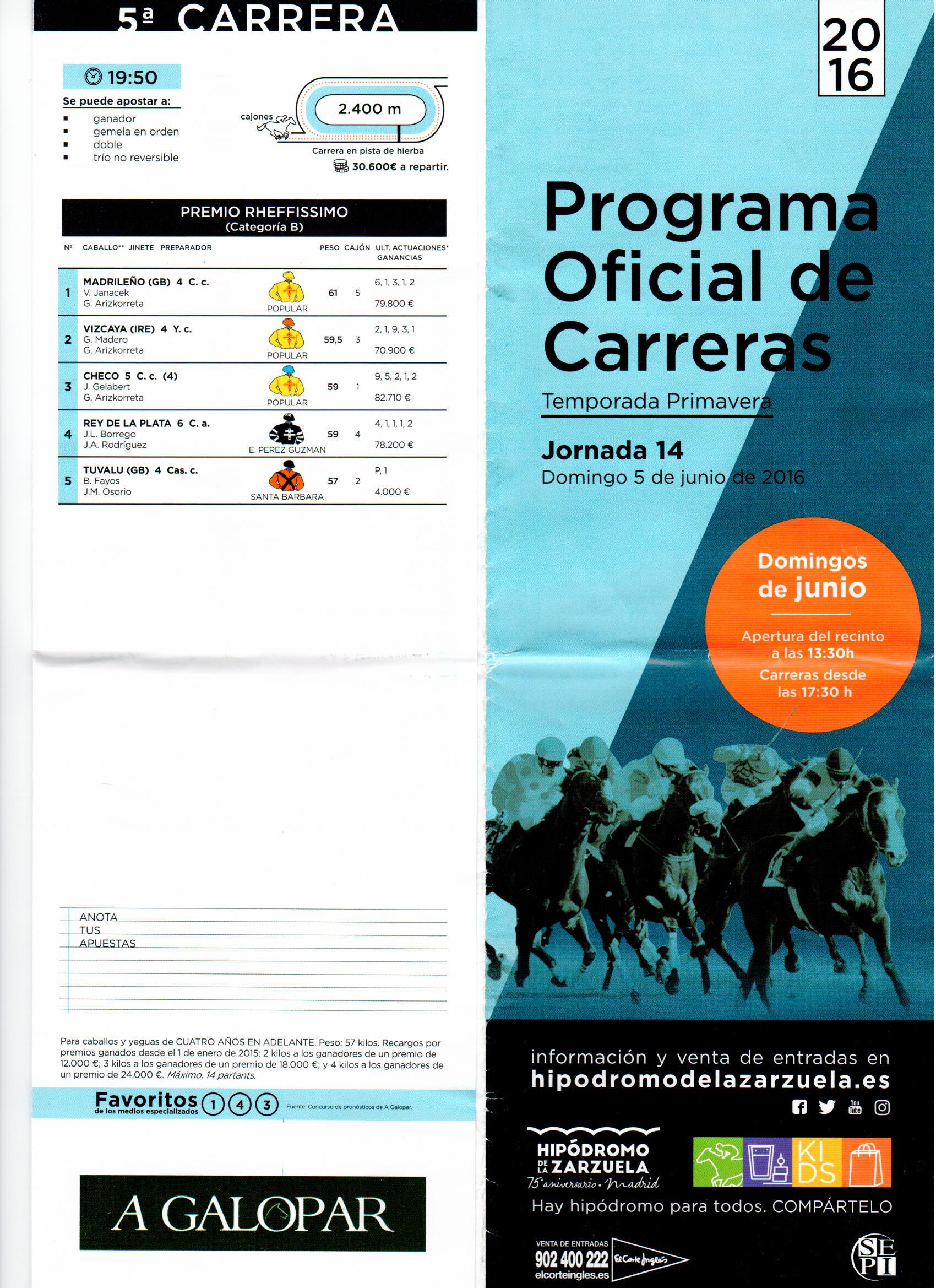 El Programa Oficial de las Carreras de la pasada primavera