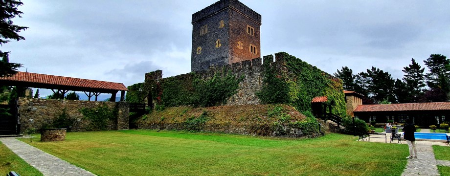 Y así fue como apareció ante nosotros, improvisa y mágicamente, la imponente y altiva Torre que había sido motivo y origen de toda aquella colección, símbolo de un desafío, o, mejor dicho, del “Desafío”, y de una misión (casi) imposible, rodeada por un foso cubierto de hierba verde, abrazada por una muralla románticamente revestida por hiedra trepadora, embellecida por unos rústicos edificios de piedra y tejas rojas y enriquecida por una sugestiva piscina central…