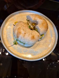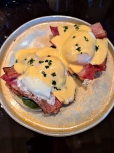 Tras una nueva pausa entreactos –el lugar es un auténtico oasis de paz, ideal para hacer pasar las horas sin prisa y disfrutar de los lujos de la vida– empezó el tercero, titulado “Solo para ti”, como si el mismísimo Papagena, en plena caza de pájaros, hubiera leído mis anteriores, e individualistas, pensamientos. Así que, feliz y satisfecha, pudiendo dar rienda suelta a mi egoísmo gastronómico, pedí “solo para mi” un maravilloso bagel cristalino de agucate, burrata y mango, mientras que él, “solo para él”, se hizo con unos fantásticos huevos benedictinos con bacon.