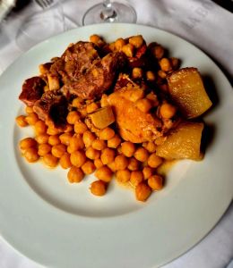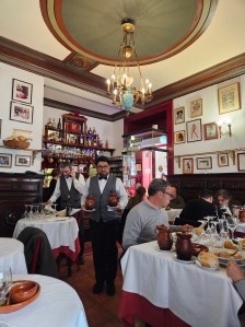 Ya toca, en efecto, el segundo turno de comida y, para nosotros también un paseo a piedi bajo la lluvia, pero con paraguas, por esta zona tan céntrica, y a la vez poco conocida, de la Villa que, reticente y celosa, se ofrece en toda su autenticidad a unos cuantos fisgones afortunados y a todos los que han oído hablar de la leyenda de un cocido –uno de los mejores, sino el mejor de la capital–, que, en su día, deleitaba el paladar de la mismísima Infanta Isabel, y que sigue brillando como una (plato) estrella de esta inmortal taberna de un Madrid que fue, y que siempre será.