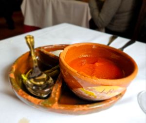 Con estas premisas, resulta inútil ojear la carta, aunque fuera para descubrir lo que, más allá del mencionado plato, tan popular, se ofrece en este restaurante capitalino. Así que, sentados en nuestra mesa, una de las mejores, en el coqueto comedor de la entrada, al lado de una ventana con vistas a la calle de la Bola –la más solicitada, y con el mismo panorama, es la número 7, a un par de metros de nosotros, allá donde se acomodaba Don Camilo José Cela–, sin dudarlo ni un segundo pedimos directamente el primer menú, el “Especial de la casa” –hay siete disponibles, todos ellos con platos típico de la cocina madrileña, incluido uno vegetariano y unas opciones kosher y halal–, es decir, el que, tras unas aceitunas y una copa de vino, cede el protagonismo a un cocido espectacular, cocinado a fuego lento, y con cariño, sobre carbón de encina en pucheros de barro individuales –con gran alegría de la que suscribe que, conforme a su egoísmo, y también a la tradición italiana, nunca quiere compartir la comida de su plato con nadie–.