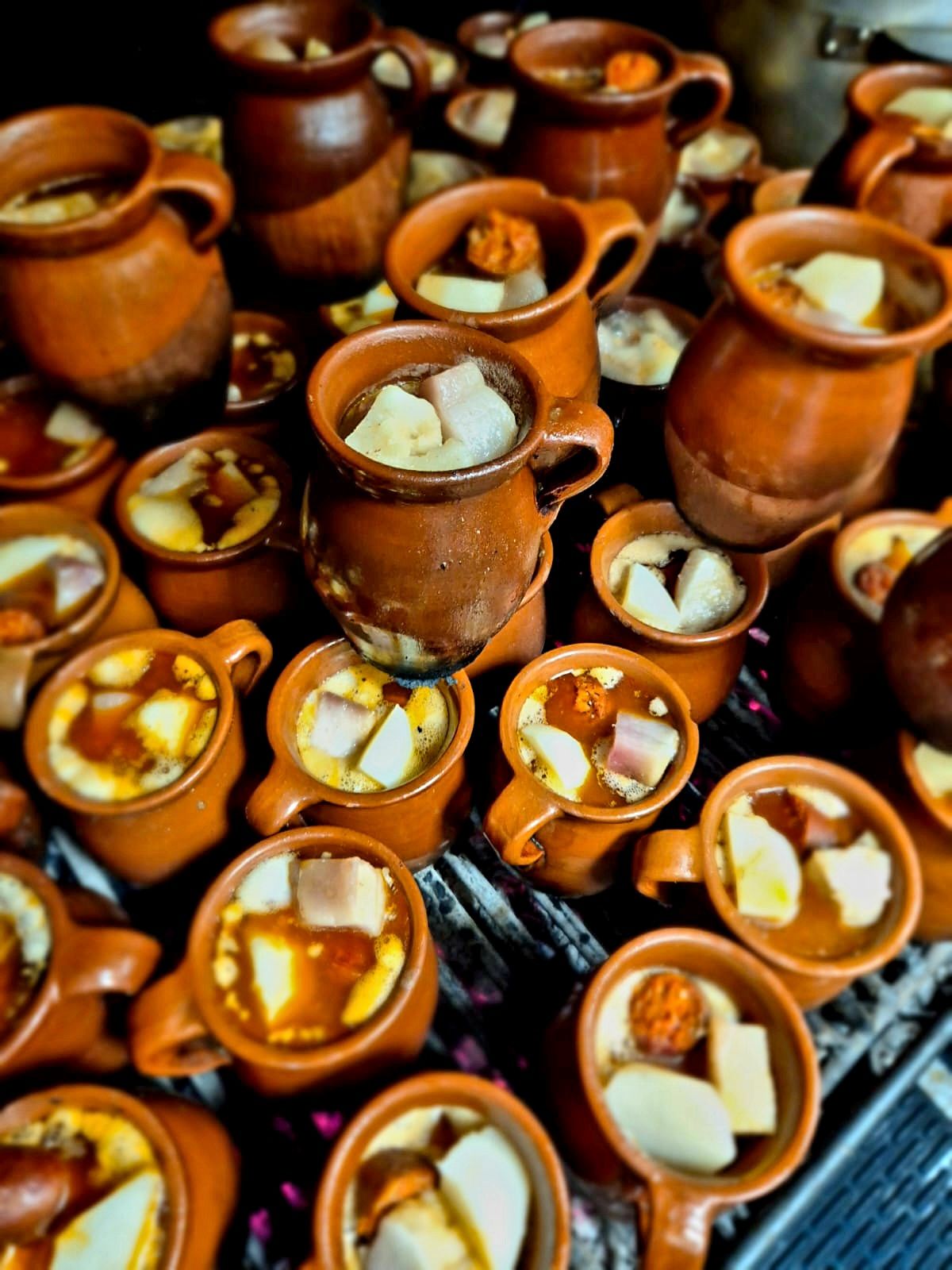 Llega así un experto camarero y, tras habernos invitado a taparnos con la servilleta para evitar embarazosas salpicaduras, puchero en la mano, recién sacado de la parrilla de carbón, vuelca en nuestro generoso plato con fideos el primer, y líquido, elemento de esta tradición culinaria que sigue un riguroso, y exitoso, protocolo de preparación y presentación: la sopa, que puede ir acompañada de guindillas y cebolleta. El connubio entre ambos ingredientes, con poca grasa y mucho sabor, es espectacular: se juntan armoniosa y gustosamente el calor del infierno y la delicadeza del paraíso…