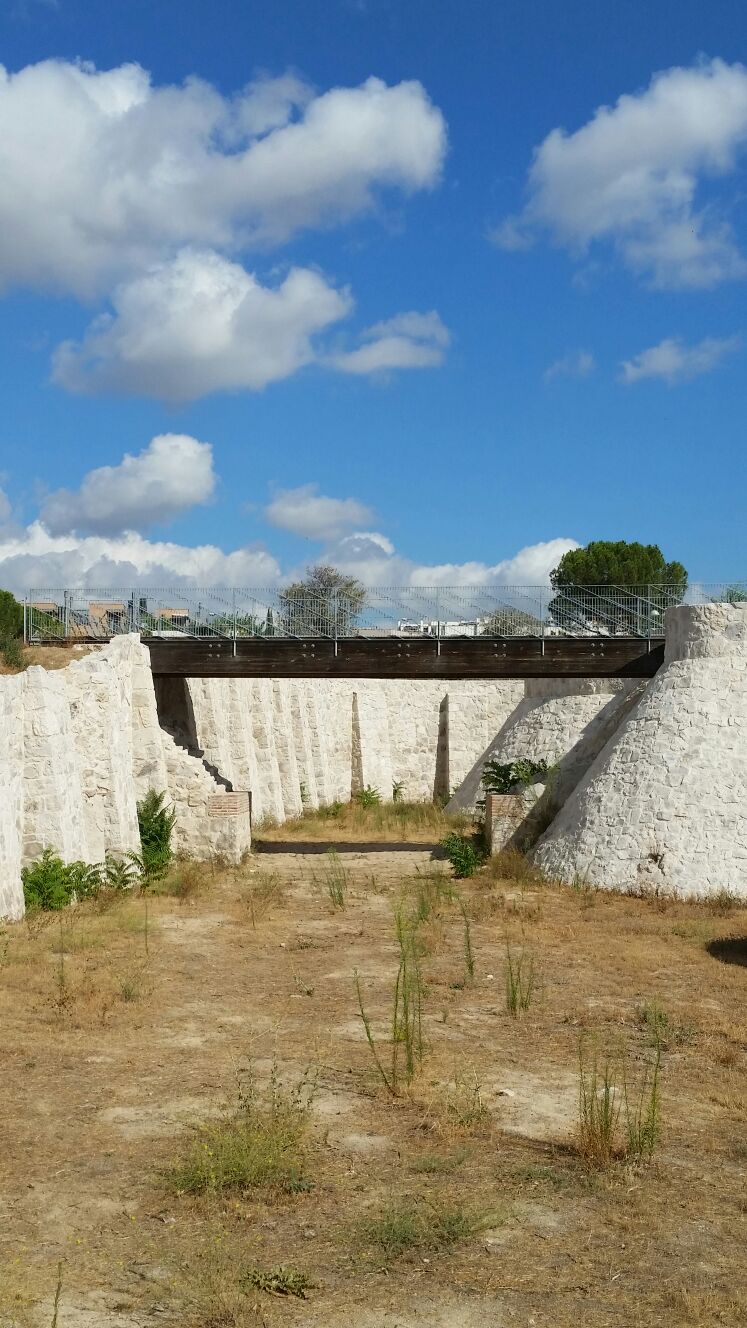Pero ese es un kilómetro cero moderno y, en cierto sentido, artificial; éste es un kilómetro cero histórico y real. Es aquí donde han empezado la(s) historia(s), y las leyendas, que a lo largo de los siglos han ido formando los «Pilares de la Tierra» madrileña, y es aquí donde, agradecida al mencionado emir, al cual está dedicado el homónimo parque, más bien parquecito, de estilo andalusí que parece abrazar, casi sustentar, este valioso y supérstite trozo de muralla árabe, donde volveré a andar a piedi por el Magerit de entonces, por el Madrid de ahora:
