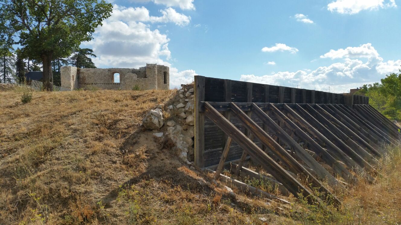 Los restos de la Casa del Guarda, una típica casa de campo construida a principios del siglo XVIII, cuando el histórico conjunto ya estaba abandonado, fue lo primero que avistamos desde uno de los estratégicos miradores repartidos a lo largo del perímetro del castillo –cada uno de los cuales dispone de un panel informativo y el correspondiente plano táctil–. Sin embargo, lo que más nos sorprendió fue el enorme foso, ancho y profundo, devuelto a su desproporcionado tamaño original después de las excavaciones, y cuya función inicial, en el siglo XV, era la de proteger la recién estrenada residencia fortificada de los Mendoza, señores adjudicatarios por parte de la Corona de la aldea de la Alameda.